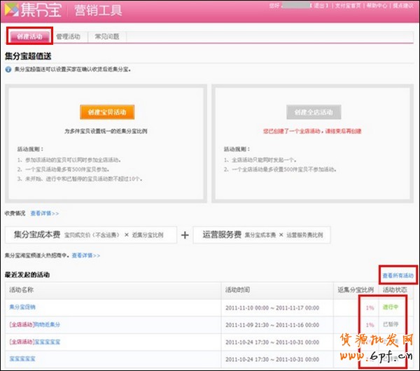 3、點擊【查看所有活動】,返集分寶比例顯示如下圖。