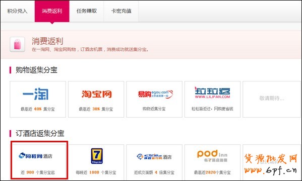 1、 訪問集分寶消費返利頁面,在酒店返利下點擊同程網(wǎng)【立即預(yù)訂】按鈕;