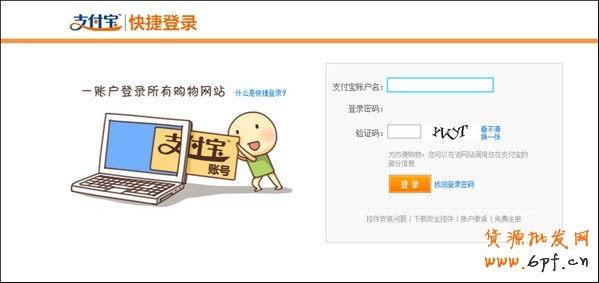 2、 跳轉(zhuǎn)到支付寶快捷登錄頁面,輸入支付寶賬戶名、登錄密碼等相關(guān)信息;