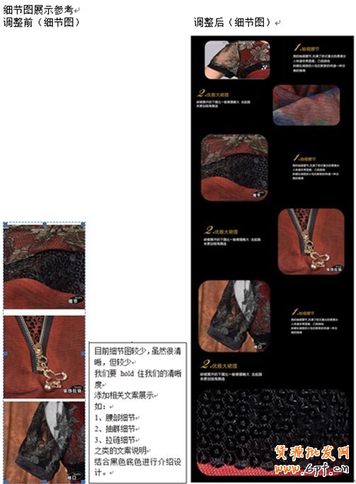 由于時(shí)間關(guān)系,每個(gè)頁面都有很多細(xì)節(jié)上的地方需要注意,但其中最重要就是,模特圖的展示和細(xì)節(jié)圖的展示,希望以上知識(shí)點(diǎn)受用。以下是一個(gè)寶貝頁面調(diào)整前后的數(shù)據(jù)對(duì)比: