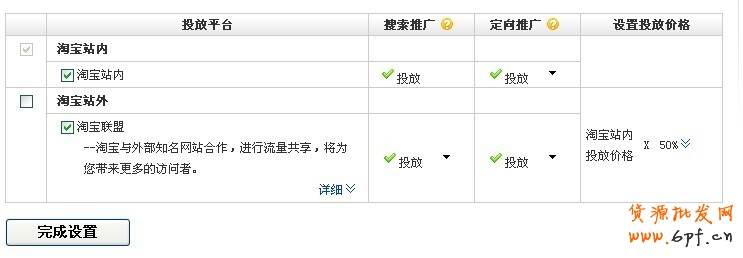 淘寶直通車目前投放平臺分為:淘寶站內和淘寶站外,淘寶站內指淘寶網投放,是必選的投放平臺,淘寶站外指跟淘寶網合作的推廣網站。