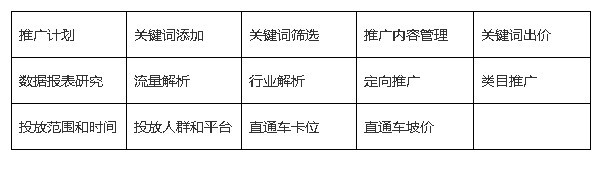 這個表中羅列了基本的直通車操作內容。大部分是大家都很清楚的,也有小部分是看著糊涂的。沒關系,我們來做一下區分