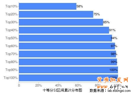 該店鋪SI排名前10%的單品所占SI的比重為58.10%