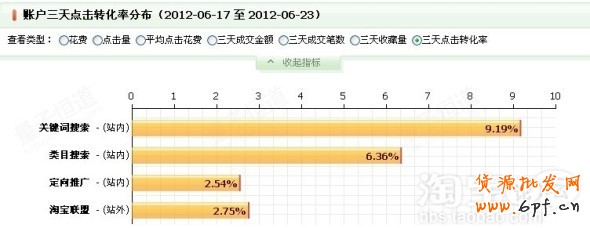 這里,可能有人會(huì)問(wèn)為什么看三天點(diǎn)擊轉(zhuǎn)化率?三天轉(zhuǎn)化率是買家通過(guò)直通車推廣鏈接進(jìn)來(lái),三天內(nèi)轉(zhuǎn)化為支付寶成交的比例;即三天成交筆數(shù)/點(diǎn)擊量;為什么要看三天的數(shù)據(jù)而不看當(dāng)天的呢?其實(shí),理論上講買家通過(guò)點(diǎn)擊推廣鏈接進(jìn)來(lái)產(chǎn)生的購(gòu)買都算推廣成功,由于時(shí)間越長(zhǎng),統(tǒng)計(jì)的數(shù)據(jù)及跟蹤會(huì)越復(fù)雜,所以淘寶定出以三天為標(biāo)準(zhǔn),可想而知,如果有5天轉(zhuǎn)化數(shù)據(jù),甚至10天,那便是更加精準(zhǔn)了。