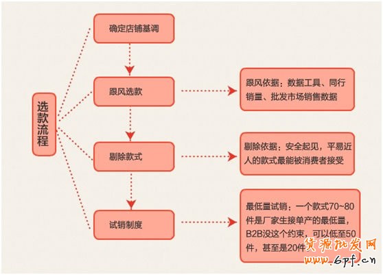 謝生根據阿里巴巴B2B、同行的銷量,以及自己的行業經驗、數據,能夠初步圈定許多初看符合店鋪風格和消費趨勢的款式。但這些款式還需要剔除,謝生的剔除標準只有一個,看其是否大眾消費者的口味,換言之,是否出位。只要是出位的款式,謝生都會將其剔除出爆款行列。謝生剔除款式的標準是:過于暴露的款式,剔除;穿著過程過于復雜的款式,剔除;配色過于大膽的款式,剔除。