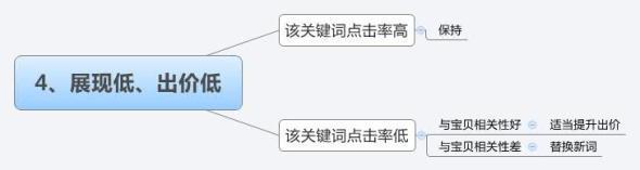 如點(diǎn)擊率低于關(guān)鍵詞點(diǎn)擊率,則考慮相關(guān)性,如相關(guān)性好,可以考慮提升出價,如相關(guān)性不好,則可以替換關(guān)鍵詞。