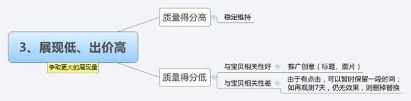 如質(zhì)量得分低,查看詞與寶貝的匹配度,如匹配,則優(yōu)化推廣創(chuàng)意;不匹配,則再觀測一段時間看效果,如效果不好,則替換新詞。