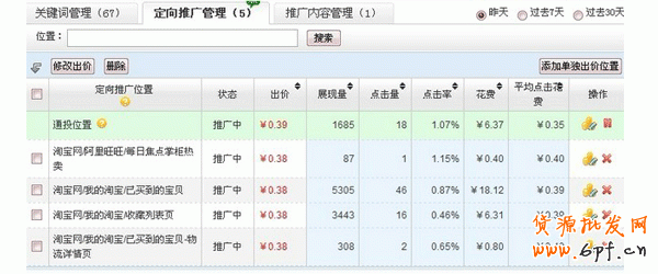 定向推廣沒有質(zhì)量得分。只有類目平均出價參考。但也有一定的規(guī)律,A:淘寶定向推廣系統(tǒng)每天凌晨1點,收錄前一天綜合評分排名前5000名的商品(不知道是類目還是全網(wǎng)),于當天進行展現(xiàn),如果沒有被收錄,提高出價,當天還是展現(xiàn)不出來的,這個規(guī)律可以讓我們在晚上11點左右,提升定向推廣的出價,以便收錄,第二天早上上班再往下調(diào),以降低平均點擊費用。B:第二天早上,如果發(fā)現(xiàn)定向推廣沒有點擊,這時不一定就沒有收錄,可能是出價太低了,可將價格調(diào)整至比類目平均出價稍高,看是否有點擊,以此可判斷是否被收錄;重復這個過程,定向推廣的費用可以做到較低的,一般會低于關(guān)鍵詞。