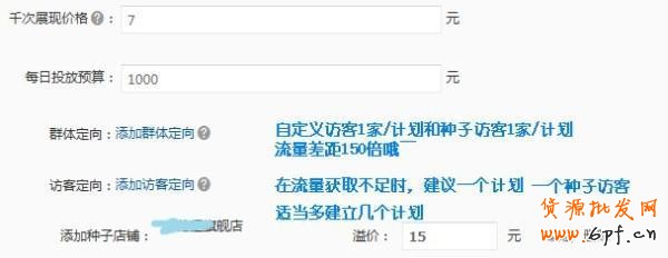 新建多個訪客定向——單個種子訪客一個計劃,預算500-1000一個計劃,CPM溢價調低!