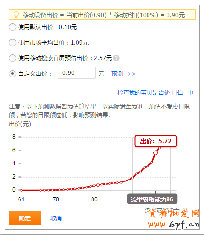 任一時刻,關鍵詞的當前真實出價 = 出價 * 分時折扣 * (移動端折扣 或者 站外折扣), 例如,無線直通車里,關鍵詞設置出價為2.0元,當前時刻的計劃分時折扣為 60%,移動端折扣為150%,那么最終參與競價的價格為 2.0 * 60% * 150% = 1.8元。