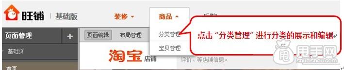 1、首先,要先進入淘寶店鋪的賣家后臺,點擊最上方的橫向導航中的“商品”下拉框下面的分類管理,進行分類的展示和編輯,如圖: