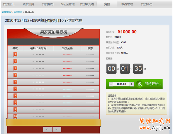 第四步: 競拍開始后,設(shè)置你的競價金額后,點(diǎn)擊出價競拍,排行榜會有狀態(tài)提示“入圍”和“出局”。