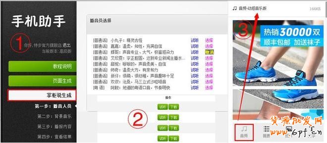 需要訂購手機助手軟件,第一步打開掌柜說,第二步先選擇播音人員,有不同風格的聲音,第三步可選擇背景音樂,輸入播報內容即可,最后就會生成一個音頻,下載下來,在手機詳情頁里插入音頻就可以了,這是在后臺上傳的方法。
