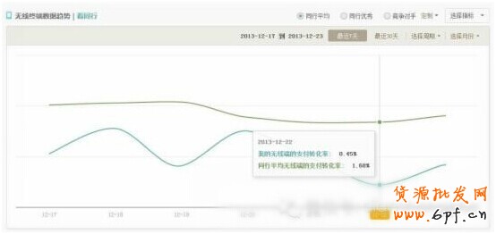 不難發(fā)現(xiàn),通過(guò)和同行無(wú)線端支付轉(zhuǎn)化率的對(duì)比,該店鋪的無(wú)線端支付轉(zhuǎn)化率,基本上處于1%以下,而同行的無(wú)線端支付轉(zhuǎn)化率,基本上維持在2%左右,所以,確定是無(wú)線端轉(zhuǎn)化率存在進(jìn)步的空間。