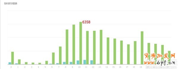 確定了參加活動,接下來便是選定活動款了。為了保證能很好的配合【每日幣搶】活動,我特意選擇店鋪當前一款爆款去參加(PS:這款也就是之前參加過兩次淘金幣活動的款式,每次的淘金幣活動銷量都在2500以上),選擇爆款,主要是出于保證500件產品能在活動當天被搶購一空,爆款轉化率相對較穩定,歷史累計銷量高,且有歷史評價,這幾點可以保證活動的順利程度。下面曬一張活動當天各時段的流量情況(綠色柱子是活動當天,其中紅色數字標記為當天10點開搶的時段流量):