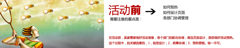 聚劃算對于賣家來講,是一個系統工程。我們可以分為報名前、活動前、活動中、活動后4個環節,下面我們就來具體來看。