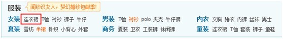 舉例: 女裝類目熱搜詞”連衣裙”——女裝類目目前熱搜的為連衣裙、T恤、襯衫、褲子、牛仔