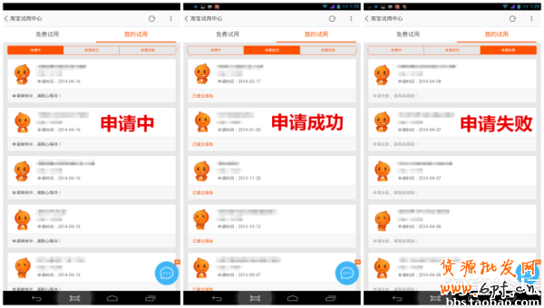 ※ 在我的試用欄目下,您可以輕松查看申請中的試用、申請成功的試用、申請失敗的試用。如有申請成功,可以再手機上點擊領取哦~~~