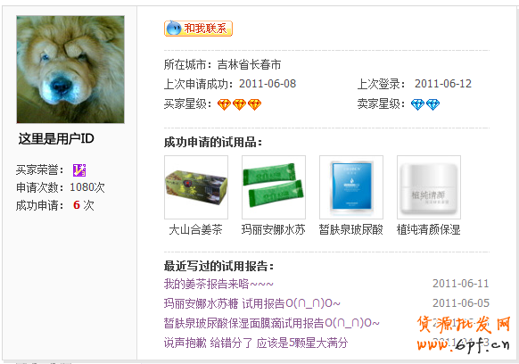 在用戶的試用報告里面,我們同樣會將用戶申請的相關信息提供給會員查看、監督,包括用戶的相關資料以及對應的申請理由: