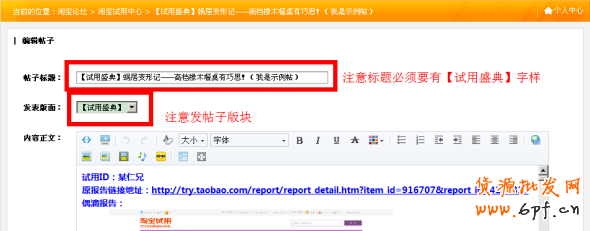 2、發帖時標題上務必在標題前加上【試用盛典】,以便統計;