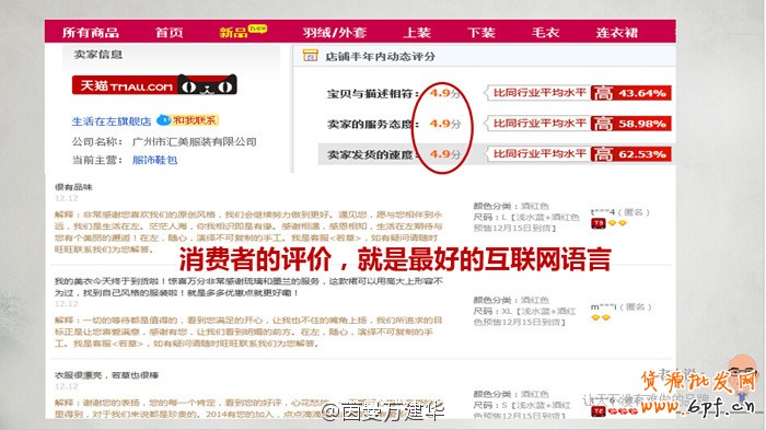 (PPT圖示)這是我們的衣服。這是顧客給我們的評價,我們針對每一個顧客的評價,設計的負責人以及品牌的創始人都會在客戶的評價下方給予回評,這是我們把品牌的理念與顧客進行很好溝通的點。