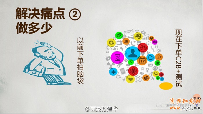 第二,要解決的痛點是做多少。以前,我們更多是下訂單,看老板拍腦袋做多少,或者是傳統渠道的代理商,根據今年線下店的經驗賣多少貨,我們現在下單更多是利用C2B的模式,商品開發完之后可以放到店鋪進行預測,每一個款式的點擊量以及顧客喜愛的程度,還可以在店鋪微淘、微博和微信里可以和老顧客很好地發生關系。他對我們設計出來的款式,到底哪一款好銷都一清二楚,很少去盲目。所以供應鏈信息化第二個點是可以知道做多少,做多了可能要壓在倉庫里,做少了不夠賣。