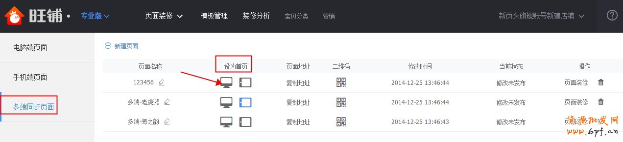 A:要同步到pad端,你需要在pc端先新建多端頁面才行哦,而多端頁面是只支持官方系統(tǒng)模塊的,所以pad端首頁會是你裝修好的多端頁面的效果.