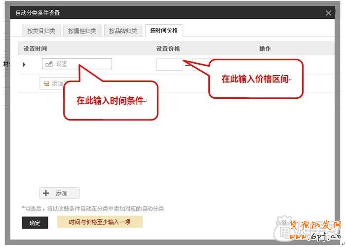 在設置按照時間價格分類的時候,時間和價格至少要輸入一樣,或者同時設置時間和價格條件