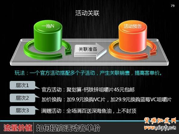目前,除了參加聚劃算的門檻較高以外,淘金幣、超優(yōu)惠、天天特價等平臺的官方活動在報名條件上越來越傾向于中小賣家,這些活動都是優(yōu)質(zhì)的流量入口,如果在參加活動的同時,再配合策劃一些關(guān)聯(lián)營銷進行導(dǎo)流、分流,提高轉(zhuǎn)化率和客單價,就能夠充分利用流量資源,有效降低推廣成本。