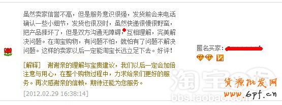 下面這張圖是由于客服態度很好,買家爛貨也簽收了,還要不用補發,給好評,真不簡單??!