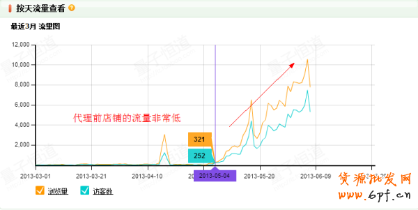 自推廣后店鋪每天的流量都在不斷的上升,最高峰的時候還超過10000個瀏覽量,比原來的200多個翻了好幾倍。