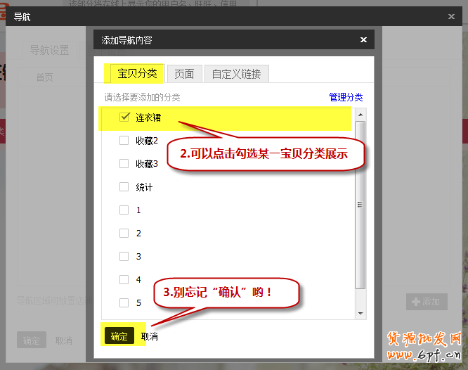 2.添加寶貝分類至導(dǎo)航操作如下: