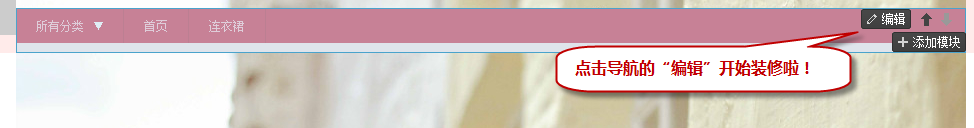 如何編輯旺鋪2012 的導(dǎo)航呢?進(jìn)入店鋪后臺,選擇導(dǎo)航處的”編輯“: