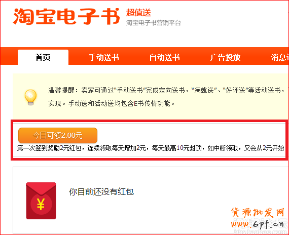 新人紅包的規(guī)則是根據(jù)賣(mài)家等級(jí)不同金額不同的,新人紅包規(guī)則:淘寶心級(jí)賣(mài)家顯示28元,淘寶鉆級(jí)賣(mài)家顯示88元,淘寶冠級(jí)及以上、天貓賣(mài)家顯示288元),電子書(shū)超值送又迎接來(lái)了又一重磅優(yōu)惠,簽到送電子書(shū)紅包: