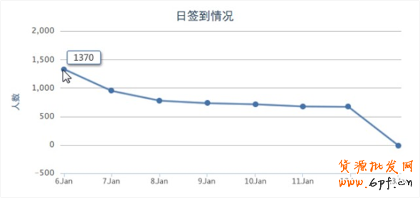 - 要低折扣或者免費拿到產品,需要每天持續簽到。通過持續的簽到來過濾和篩選精準目標用戶,以下是活動期間店鋪簽到人數變化:
