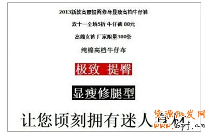 文案寫了“13年新款、折扣、限量“,限量可以勾起買家緊迫感,哪怕一個(gè)買家匆匆忙忙地,不樂意看這些小字,那么看到“極致提臀 顯瘦修腿型”的時(shí)候,你說這些文字對于買家的腦的刺激,他會不會對件產(chǎn)品的興趣就來了呢?“哇,這個(gè)東西能提臀,還能顯瘦修腿型,那這個(gè)東西很符合我的修身小腳褲的要求”。”并且能讓您頃刻擁有迷人身材“,這么大的字不用多,簡單凸顯出來,那么他對于你的立馬就會勾引起興趣的哦。