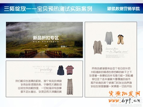 這就變成了水到渠成的事情了。這里,我要講的重點就是,做好寶貝測試和預熱,雖說不難,但是要做好很難。我舉三陌綻放的例子,就是想告訴大家,做好寶貝測試和預熱的方法,這里的方法指尋找一個適合你的路線或推廣專題。