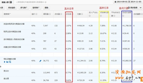 核心客戶的優點:精準性最高。此類人群是瀏覽過未購買店內商品的訪客、購買過店內商品的訪客、店內商品放入購物車的訪客、收藏過店內商品的訪客,把我們的商品再一次展現于他們面前,由于這4類訪客對店鋪寶貝有所印象,因此點擊率效果最明顯,點擊幾率最大,引進流量最精準的人群渠道。因此,買家再次看到產品后直接下單購買幾率較大,很利于轉化提升。
