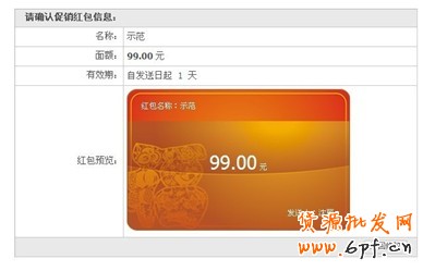 2、設(shè)置紅包:紅包名稱自己想,說明可填寫可不填寫,面額可自定,有效期,如果是刷件的話,一般都建議設(shè)置為一天,要是刷客有事沒用到紅包的話,那么紅包里的錢還是會(huì)自動(dòng)返回到賣家的支付寶上的。
