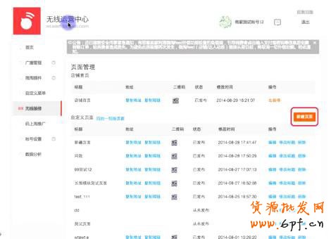 1、點擊“無線裝修-頁面管理-自定義頁面-新建頁面”,新建活動頁面;