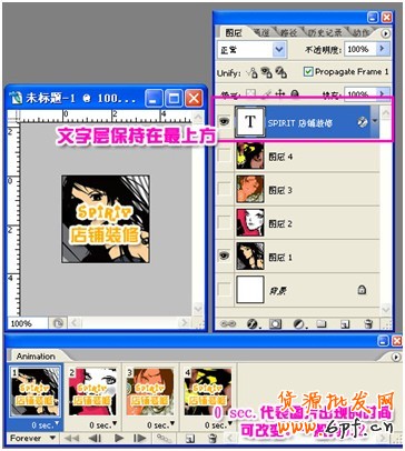第六步,就是加文字啦。注意的是文字層保持在最上方。這樣文字也就在每張圖片的上面啦。