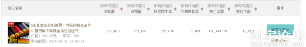 2天48小時共銷售21170組5條裝內褲。創造單坑98.08萬銷售額。總瀏覽量:506788總訪客數243630其中無線端流量占總流量的80%平均轉化率高達8.05%活動第二天在流量減少的情況下毅然直沖行業第一秒殺各種聚劃算、品牌團、淘搶購。