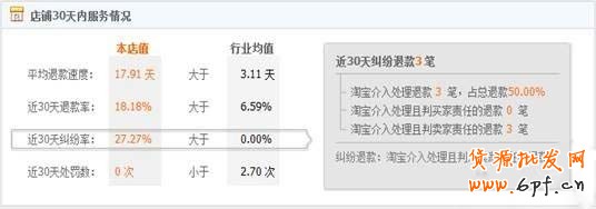 不同賣(mài)家的糾紛退款情況對(duì)比