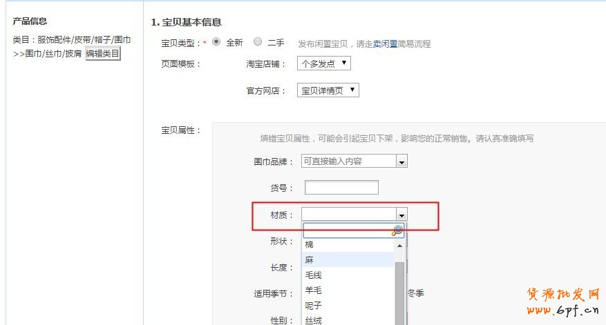 2)圍巾/絲巾/披肩類目上傳頁面