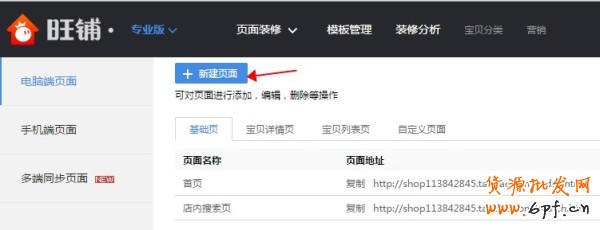 入口二:打開“頁(yè)面管理”菜單,點(diǎn)擊“新建頁(yè)面”按鈕。