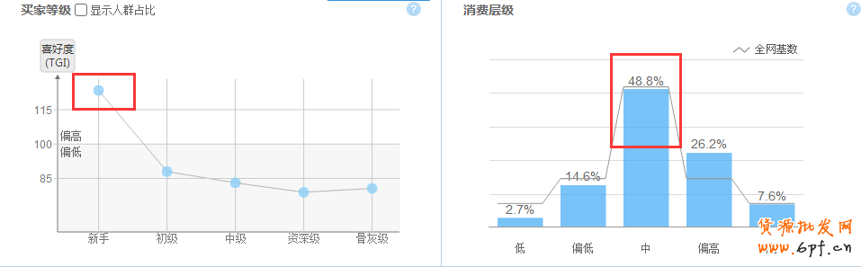 人群搜索這一塊所添加的指標(biāo)是根據(jù)主營類目結(jié)合淘寶指數(shù)這一工具分析一年的數(shù)據(jù)情況,消費(fèi)人群性別占比大概是男女各占一半這樣,那么就將男受眾和女受眾給單獨(dú)區(qū)分開來測(cè)試;買家喜好度在新手這一塊占比是最高的,也就是說這是一個(gè)很好的商機(jī),這一部分人群就好比是未開發(fā)群體,那么將“瀏覽未購買店內(nèi)商品的訪客”給添加進(jìn)來一并測(cè)試,通過測(cè)試后發(fā)現(xiàn)真的是取得了意想不到的效果。