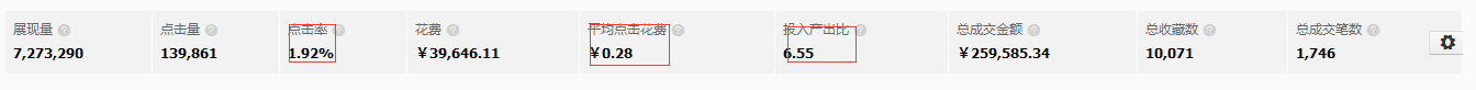 以上是女鞋直通車的數據,該寶貝的ROI為6.55,ppc是0.28,點擊率是1.92%;該女鞋的點擊率和ppc是賬戶的轉化數據的重要因素,因此該賬戶的轉化數據是比較不錯的;大家都知道要想達到這樣的效果,是需要經過長期的培養的。