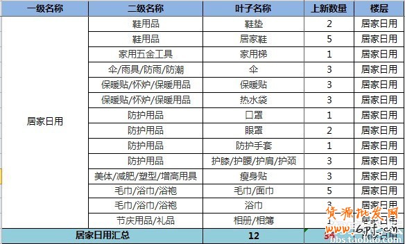2014年9月29日-10月26日,淘金幣百貨各品類坑位數如下公布。
