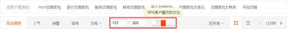 解析:從帆布背包的搜索結果可以看出,共有4.93萬件寶貝,且從搜索一屏出現的屬性維度看,因為對材質的限制,致使整體出來的屬性維度更加接近我們的寶貝,從價位上看,還是處于第三塊的小方塊內,價格相對是中偏高。
