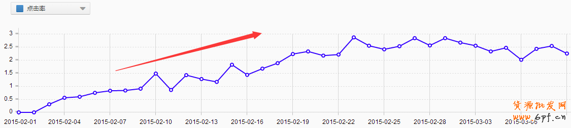 經(jīng)過一個月的優(yōu)化后寶貝總體的點擊率呈上升趨勢,三月份之后點擊率趨向穩(wěn)定。